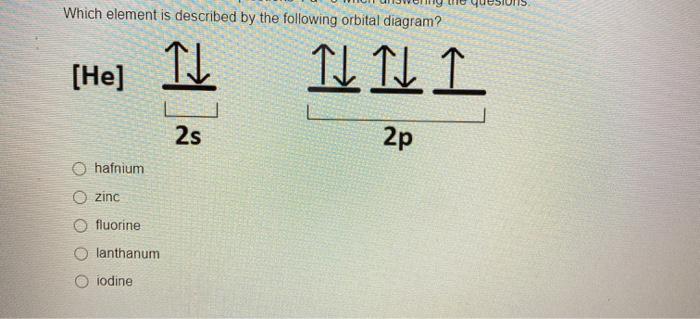 Orbital diagram of Barium Ba 57. Write the complete orbital diagram and electron. This is a sample answer.