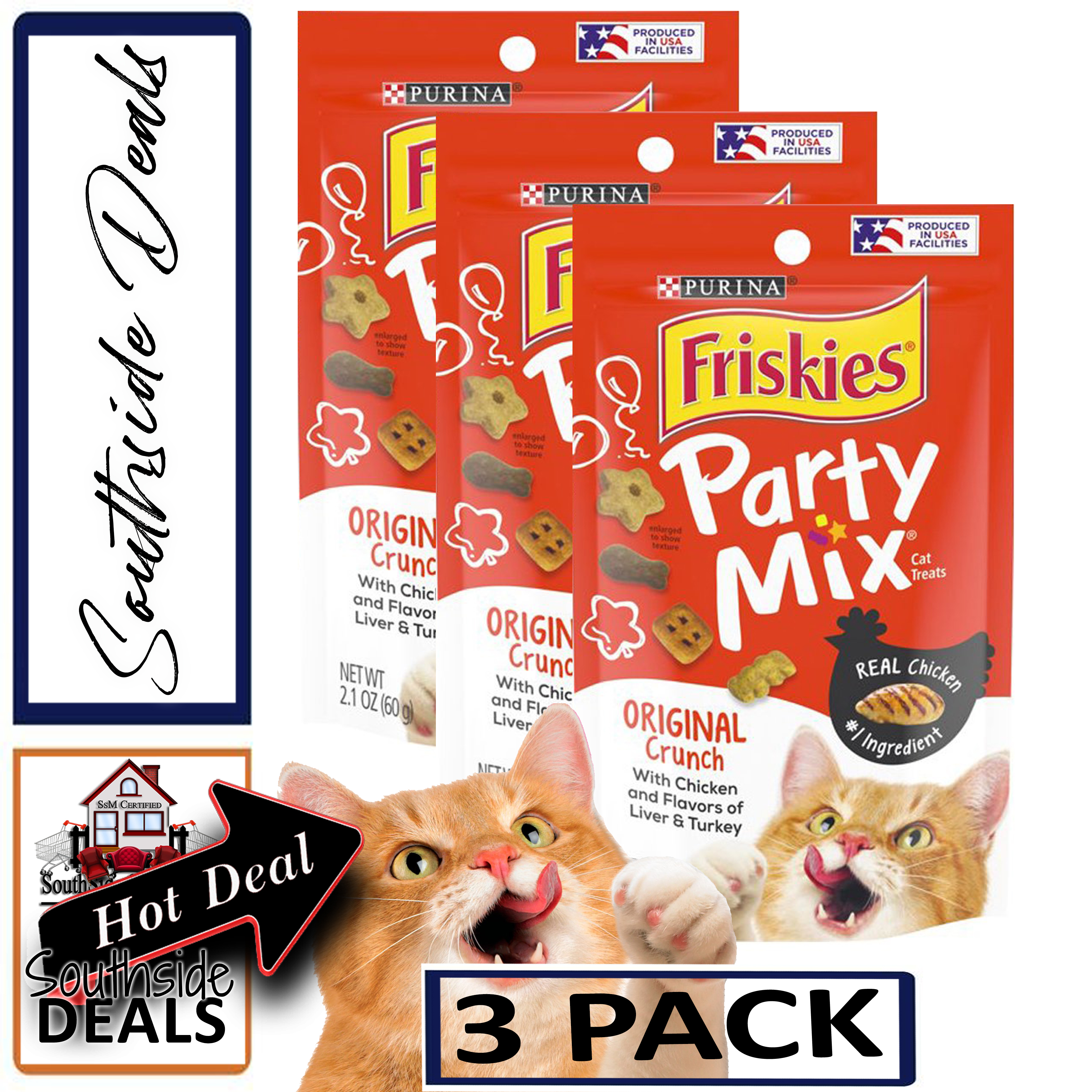 Friskies 3 Pack Cat Treats Party Mix Original Crunch 2 1 Oz Pouches Walmart Com